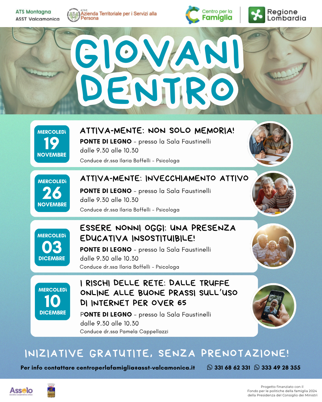 Ponte di Legno: incontri di gruppo per persone over 65 dal titolo “Giovani Dentro"