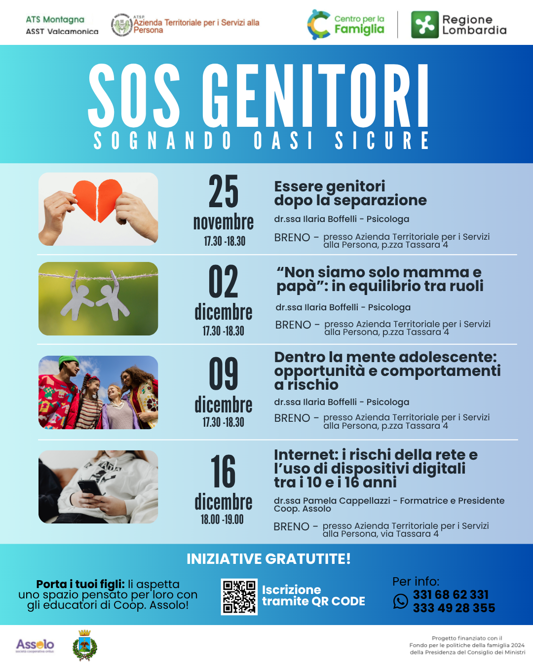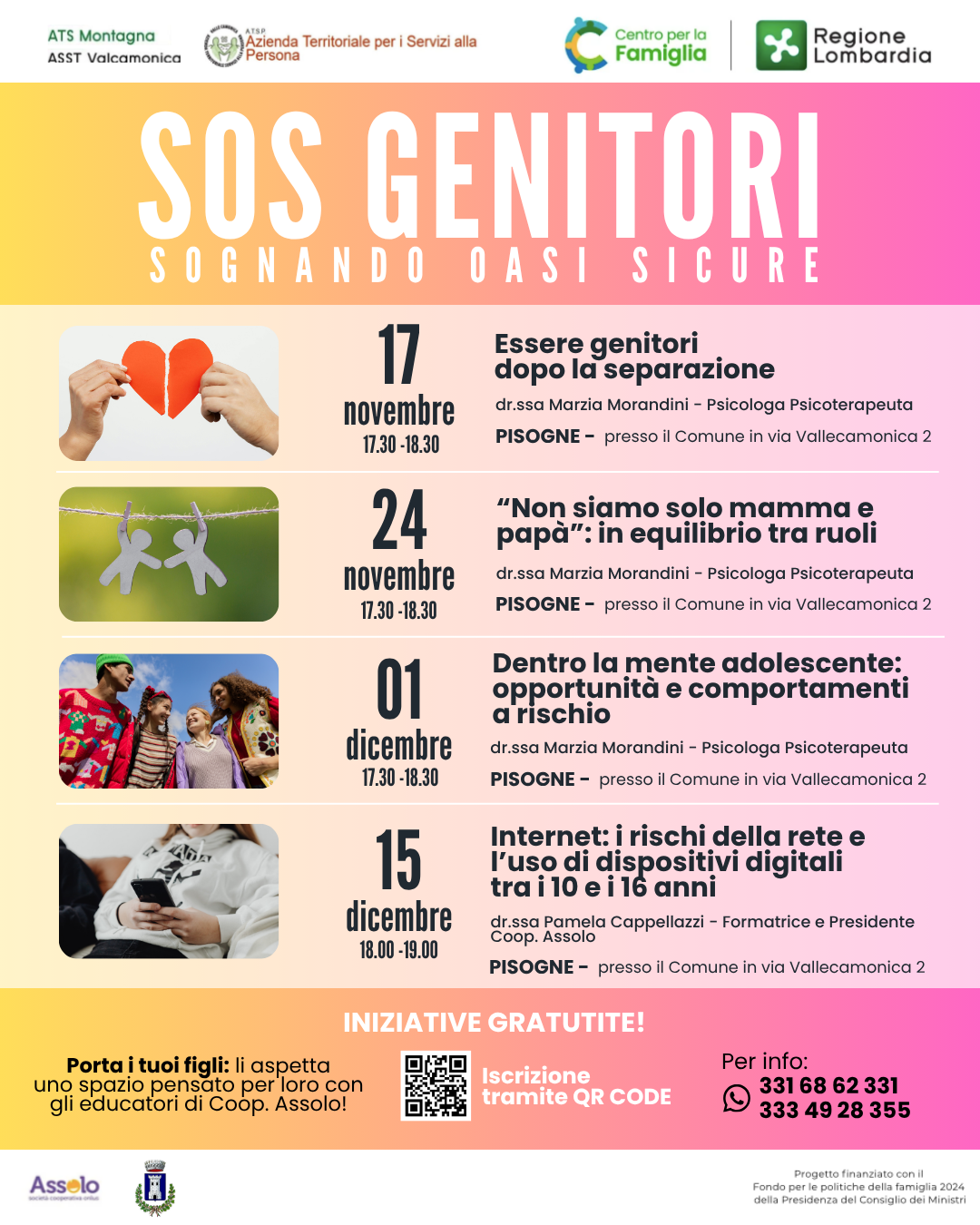 Breno e Pisogne: incontri di gruppo per genitori dal titolo “SOS Genitori”